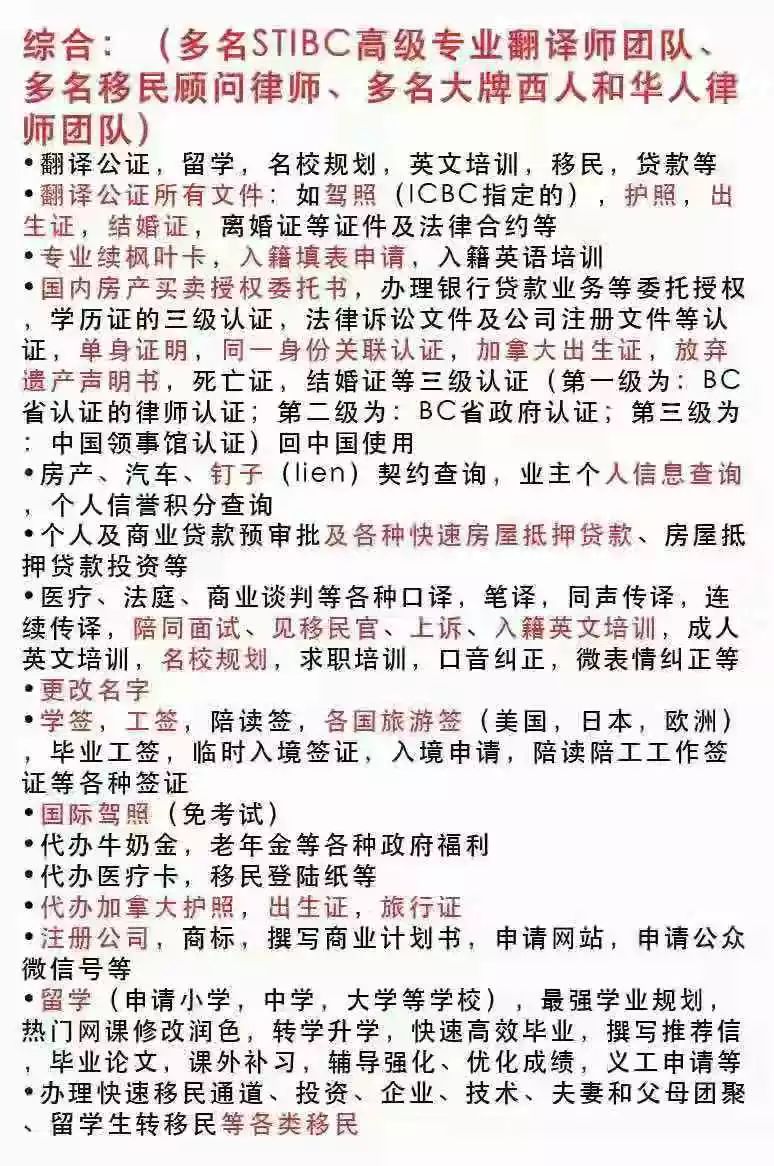 本公司有BC省认证的大牌西人律师和大牌华人律师