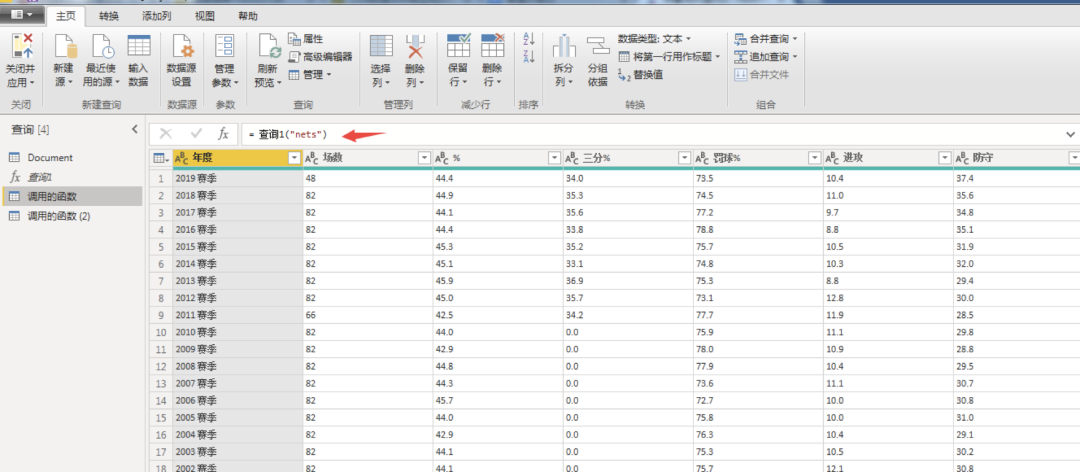 源 =Web.Page(Web.Contents("https://china.nba.com/teams/stats/#!/"&team)){0}[Data]