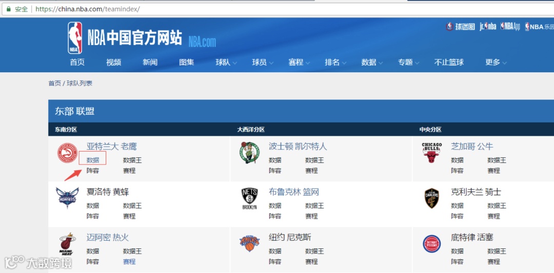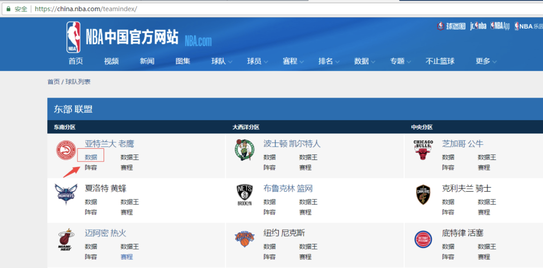 输入 https://china.nba.com/teams/stats/#!/hawks 等待解析数据