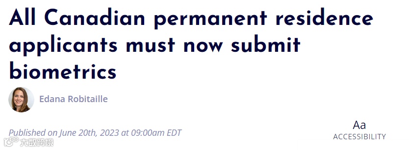 加拿大移民、难民和公民事务部(IRCC)更新了永久居民(PR)的申请程序,从6月14日起,任何申请加拿大永久居民的人都必须提交生物识别信息,无论他们以前是否已经在临时居留申请中提交过。
