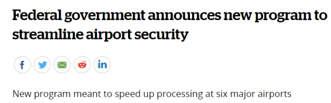 “加拿大机场多年来一直要求进行基于风险的筛查,我们对今天宣布的这一进展感到鼓舞。”