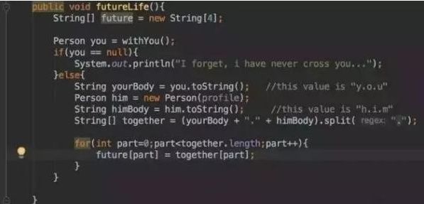 //快速脱单代码 private static final THE_ONE ; ResultSet peopleInfoSet= China.getPeople();