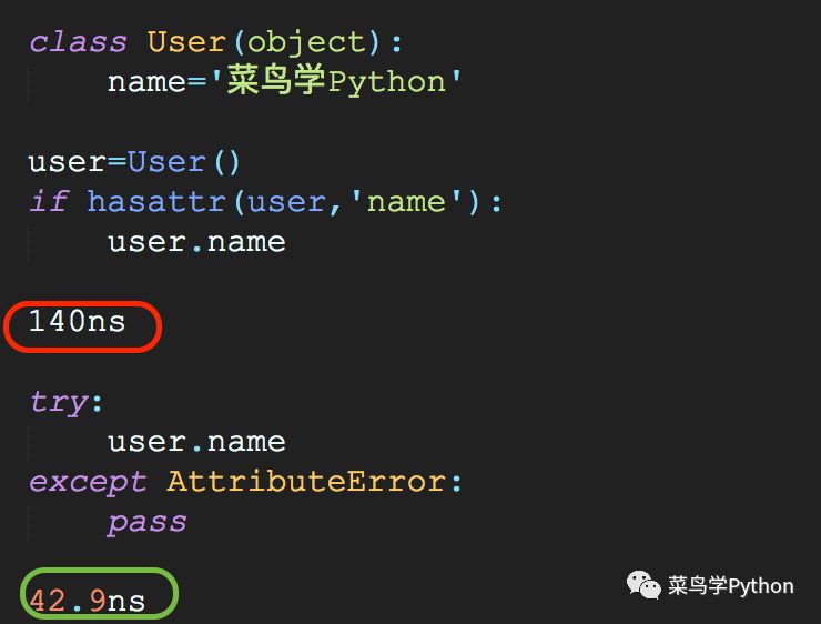 性能:第二种比第一种快了近3倍,简单粗暴直接用异常,而第一种会通过内置函数hasattr来先检查,查找内部类的属性,增加了开销。