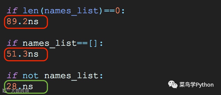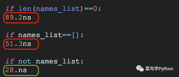 性能:第三种最快,第三种比第一种快了3倍;其实大部人新手都喜欢用len来判断,其实我也是,这个习惯要改。