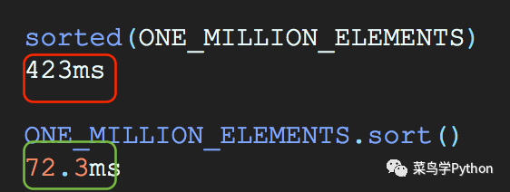 性能:第二种比第一种快了近6倍,sorted函数会把原来的列表进行排序然后再返回一个新的列表,而sort函数直接再原来的列表上面排序,节省了开销。