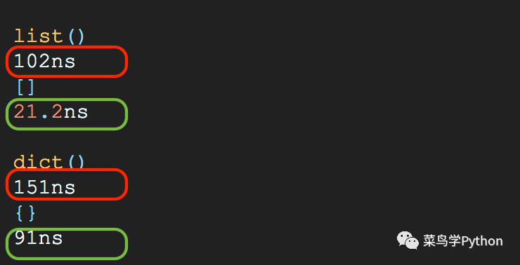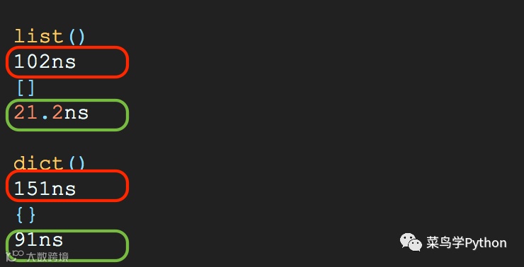 性能:没有对比没有伤害,因为Python一切皆对象,所以当你用list()生成一个对象的时候会产生开销,而[]直接返回一个list,会快很多,同理dict也是一样的。