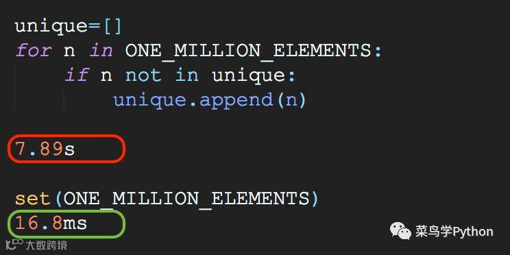 性能:第二种比第一种快了近400倍,所以能用原生的内置的数据结构,一定要用原生的。不过相信大部分同学去重都开始用set了。