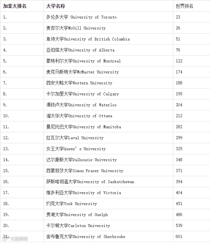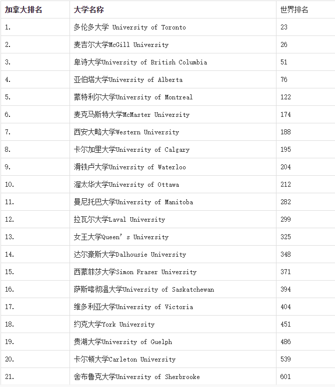 亚伯塔大学在全球排名第76位,蒙特利尔大学排名第122位。