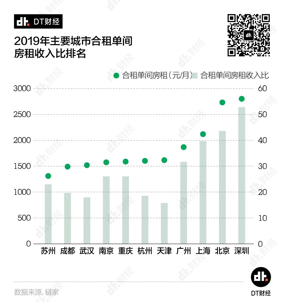 《报告》假设,当月租金少于收入的30%时,青年人的幸福感更高,就算是拥有了租房自由,此条件下的收入,就算是在这一城市的租房自由收入。