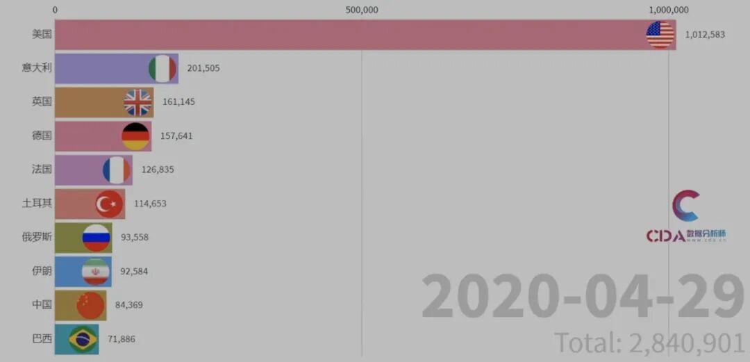 美国确诊超100万!教你用Python画出全球疫情动态图