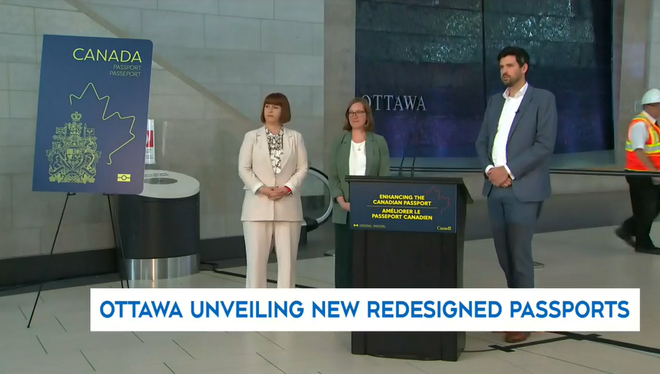 加拿大移民部长肖恩·弗雷泽(Sean Fraser)在渥太华国际机场举行的新闻发布会上出席了新护照的揭幕仪式,该护照自2013年以来一直在筹备中。