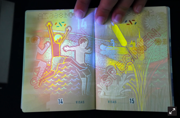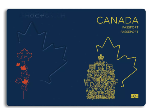 新版护照的封面上印着大大的枫叶图案轮廓。国徽被移至左下角,这是几十年的第一次重大变化!