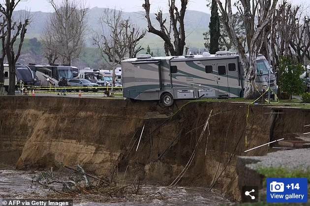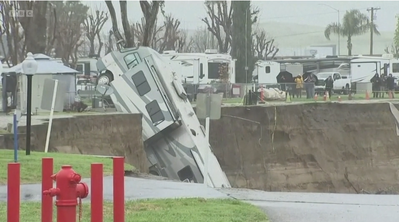 一辆RV房车竟然在露营地被洪水冲下悬崖,就这么被冲走了!