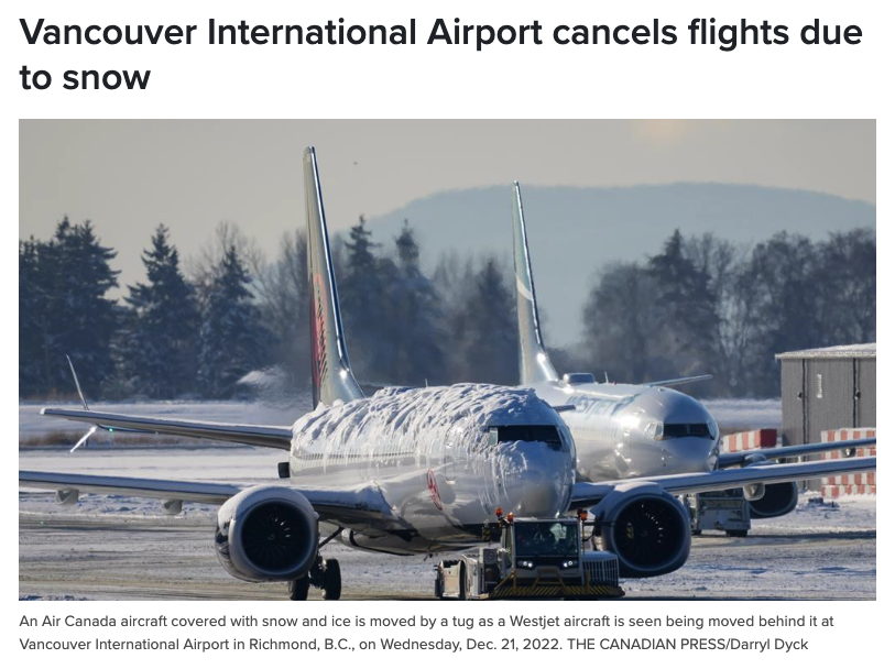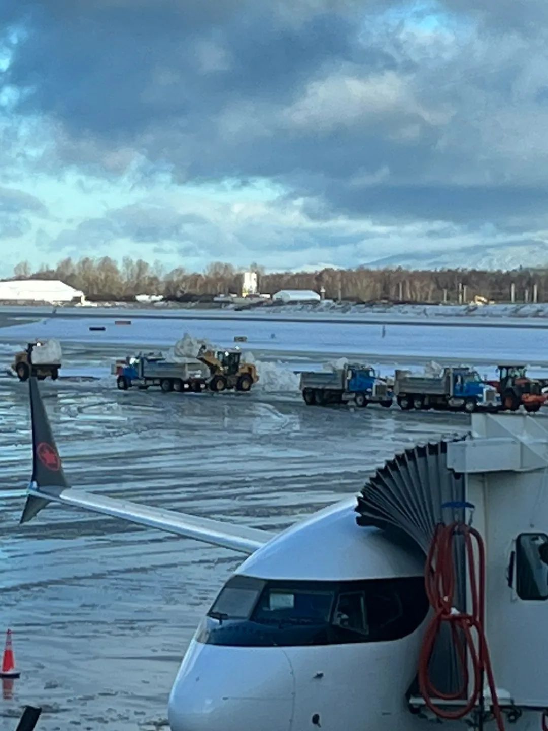 温哥华YVR机场也报告称,昨晚机组人员和机场工作人员一宿都在为飞机除冰+清理跑道。