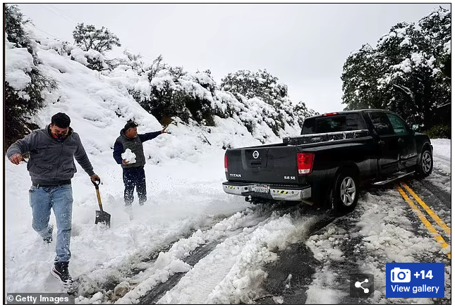 从没见过这架势的LA人,更别说在雪里开车,无数人被困在了路上,呼朋唤友帮忙推车: