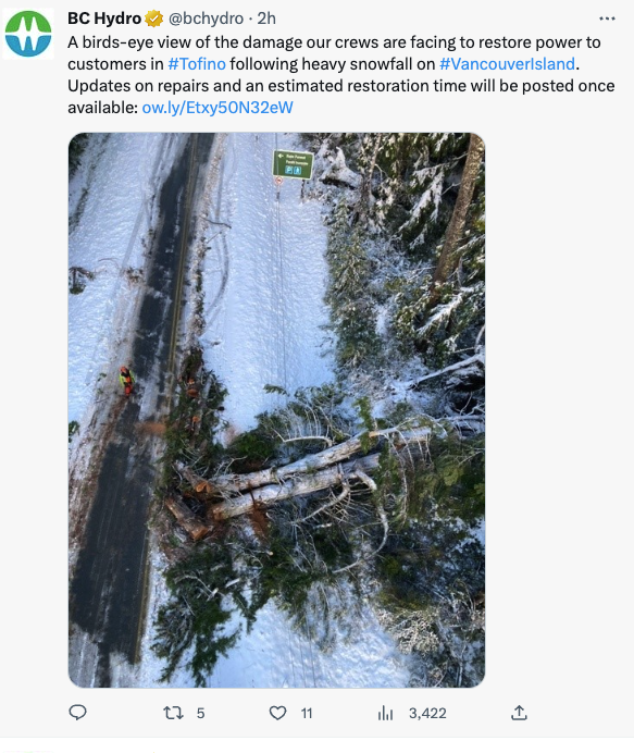 但是居家的人有的也不好过,BChydro官网显示,截止周日上午10点,低陆平原有28000多人断电,岛上还有4000户人断电。