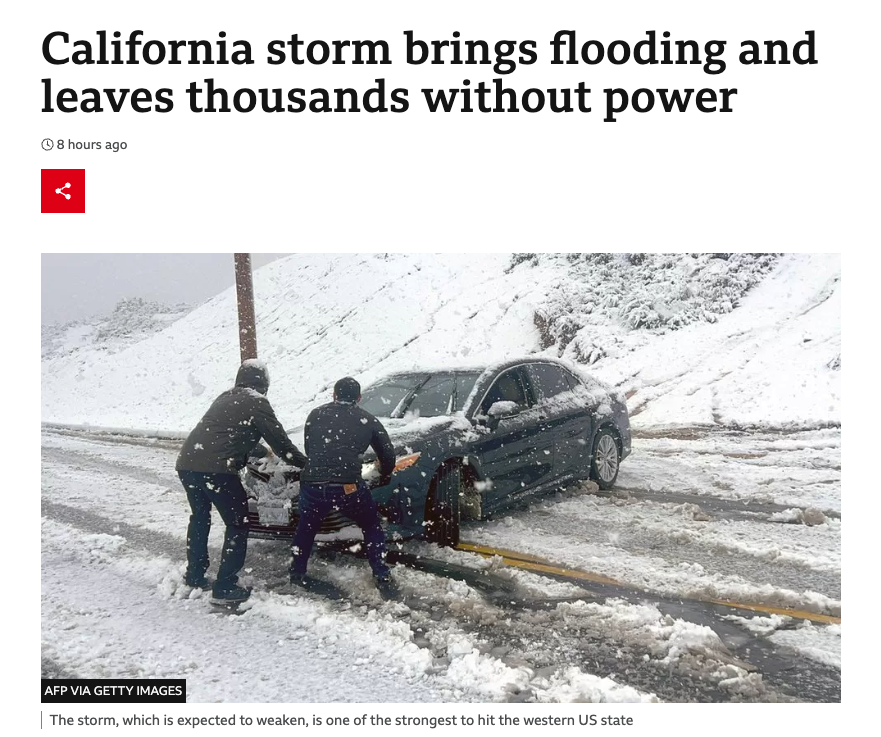 而南加州则是迎来了降雨和洪水,高达19厘米的降雨把一切都冲垮了。