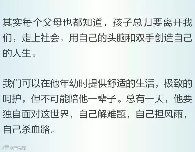 所以,如果你真的爱他,就该在他离开你之前,教会他和世界相处的能力,这是你对他的最大帮助和保护。