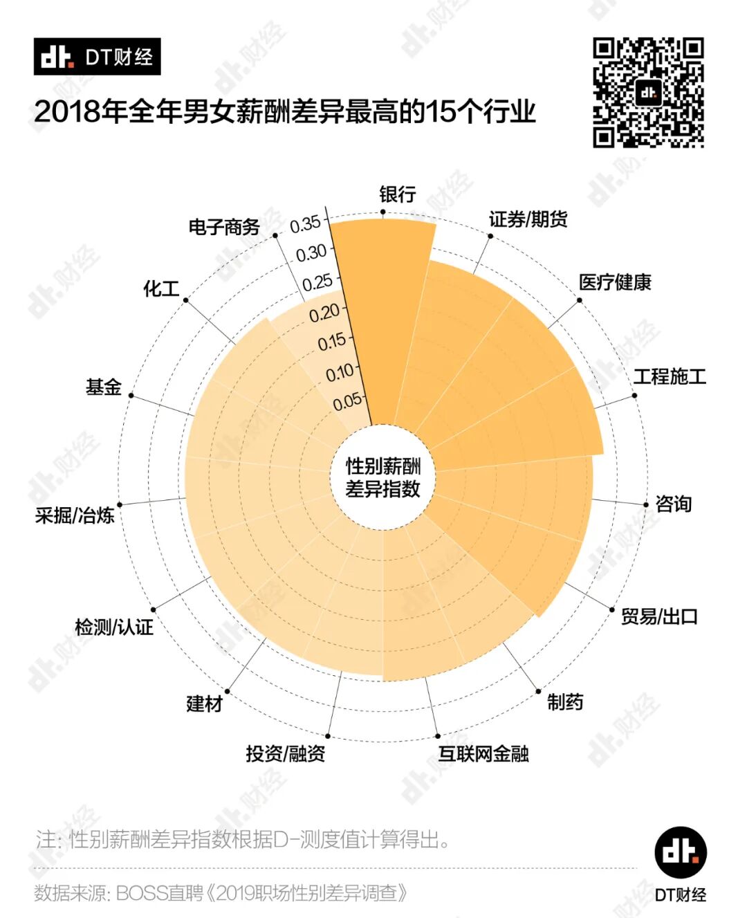 从具体行业来看,在避开了样本极值的影响后,2018年男女薪酬差异最为严重的依次是银行、证券/期货、医疗健康、工程施工、咨询等行业。