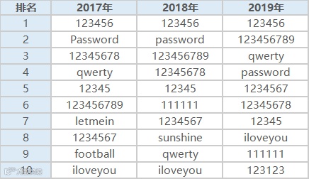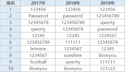 从下面的统计表中看,最近三年的最烂密码TOP5其实都大同小异。