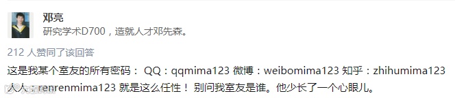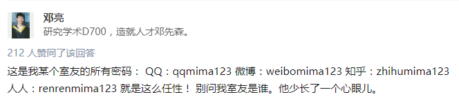 在知乎问题“如何给自己各种帐号编一个安全又不会忘记的密码?”中,找到了最具中国特色的密码编法: