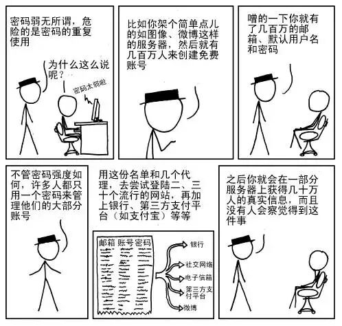 即便设置了稍微复杂一些的密码,但是很多人会一个密码通用于大多数账号。一旦密码在一个网站被泄漏后,不法分子便可以通过获取的密码,对另一个网站上的数据进行撞库,借此很容易就能获取大量隐私数据。