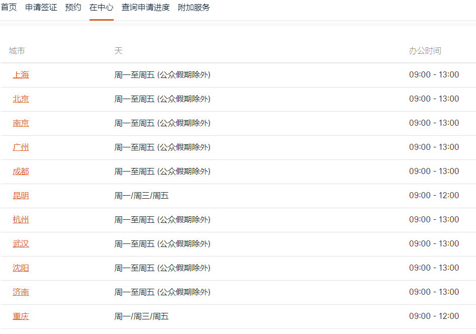 南京、北京、广州、济南、成都、沈阳、杭州,武汉及上海:09:00-13:00,周一至周五(五个工作日)