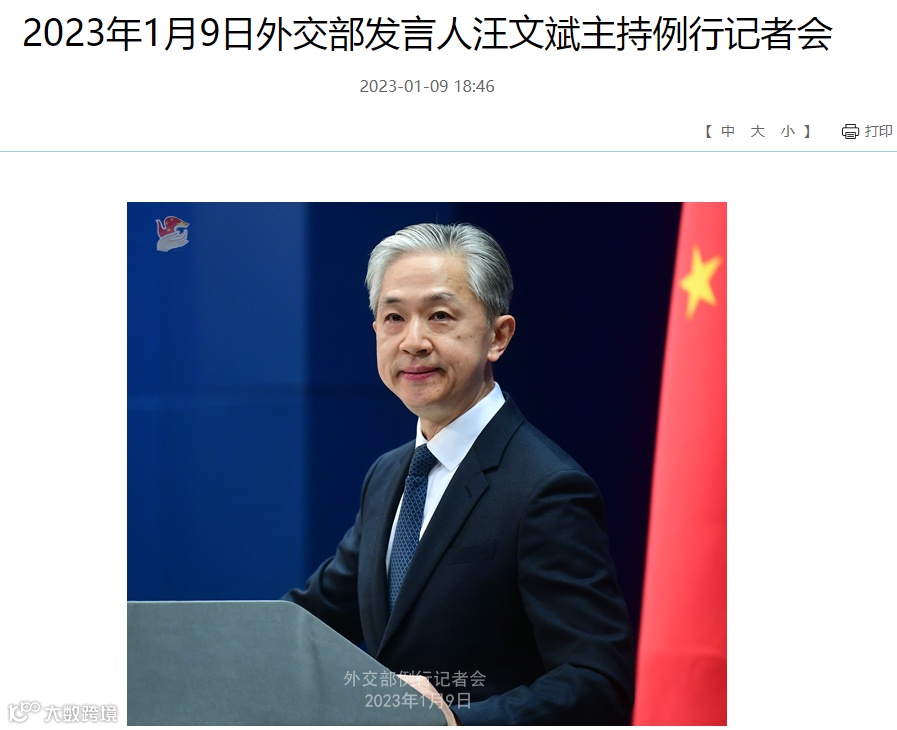 在1月9日外交部发言人汪文斌主持的例行记者会上,汪文斌也再次强调: