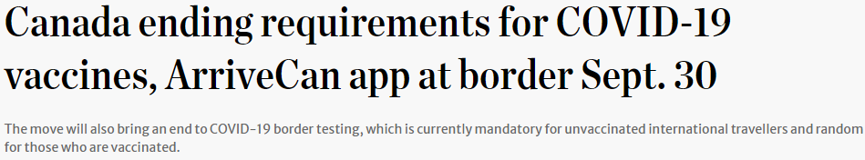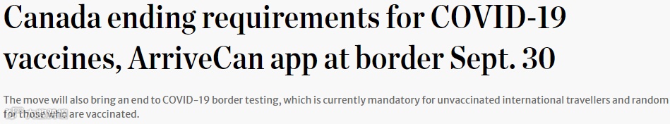 据今天的新闻报道,总理贾斯汀·特鲁多已同意取消加拿大防疫措施,9月30日起!