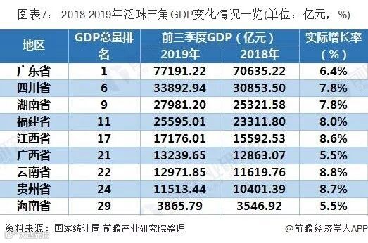 而泛珠三角地区的经济实力发展较为不均衡,基本上靠几个经济发展领先的省市在带动,其中广东省2019年前三季度的GDP总量占整个泛珠三角地区GDP总量的34.55%。