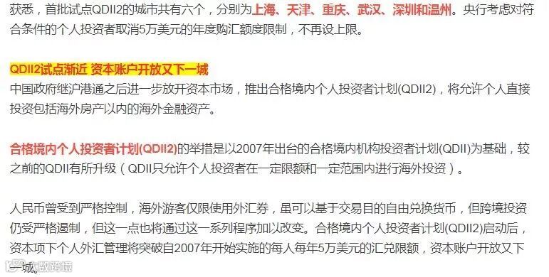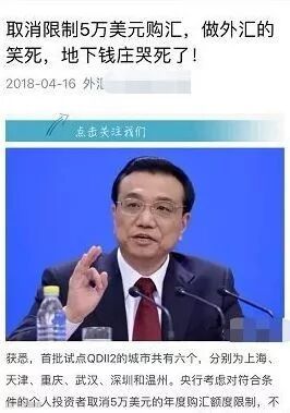 2015年传言的QDII 2,直到目前也并未落地,也无任何官方权威说法,今天却又被几个不良海外理财公司翻出来炒作取消5万美元外汇限制,不知是小编的无知还是刻意的忽悠客户。