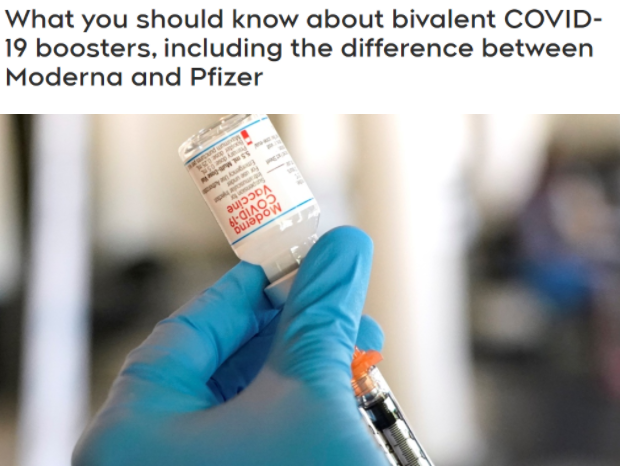 “莫德纳疫苗剂量略高,针对原始病毒和Omicron BA1变种;辉瑞剂量略低,针对原始病毒和Omicron BA4 和 BA5变种。”