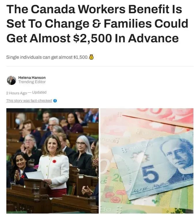 这项福利将为单身工人提供最多$1428加元,而家庭将获得最多$2461加元!
