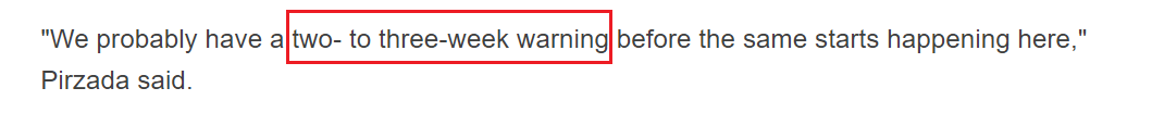 加拿大可能还有2-3周时间,然后也将面临英国和新加坡一样的情况。