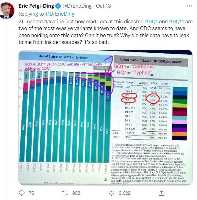 包括从BA.5(占68%)裂变出去的BQ.1、BQ.1.1和BF.7(共占17%),以及从BA.2升级而来的BA.2.75和 BA.2.75.2(约占3%)。
