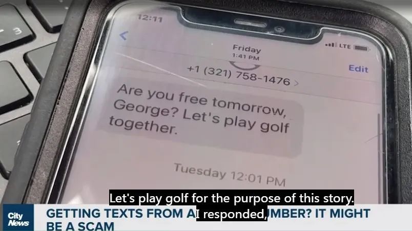 最近几天我也收到了好几个。一个写着:“乔治明天有空打高尔夫球吗?” 我回应:我不是,我的名字不是乔治。但是我真的不该这样做。