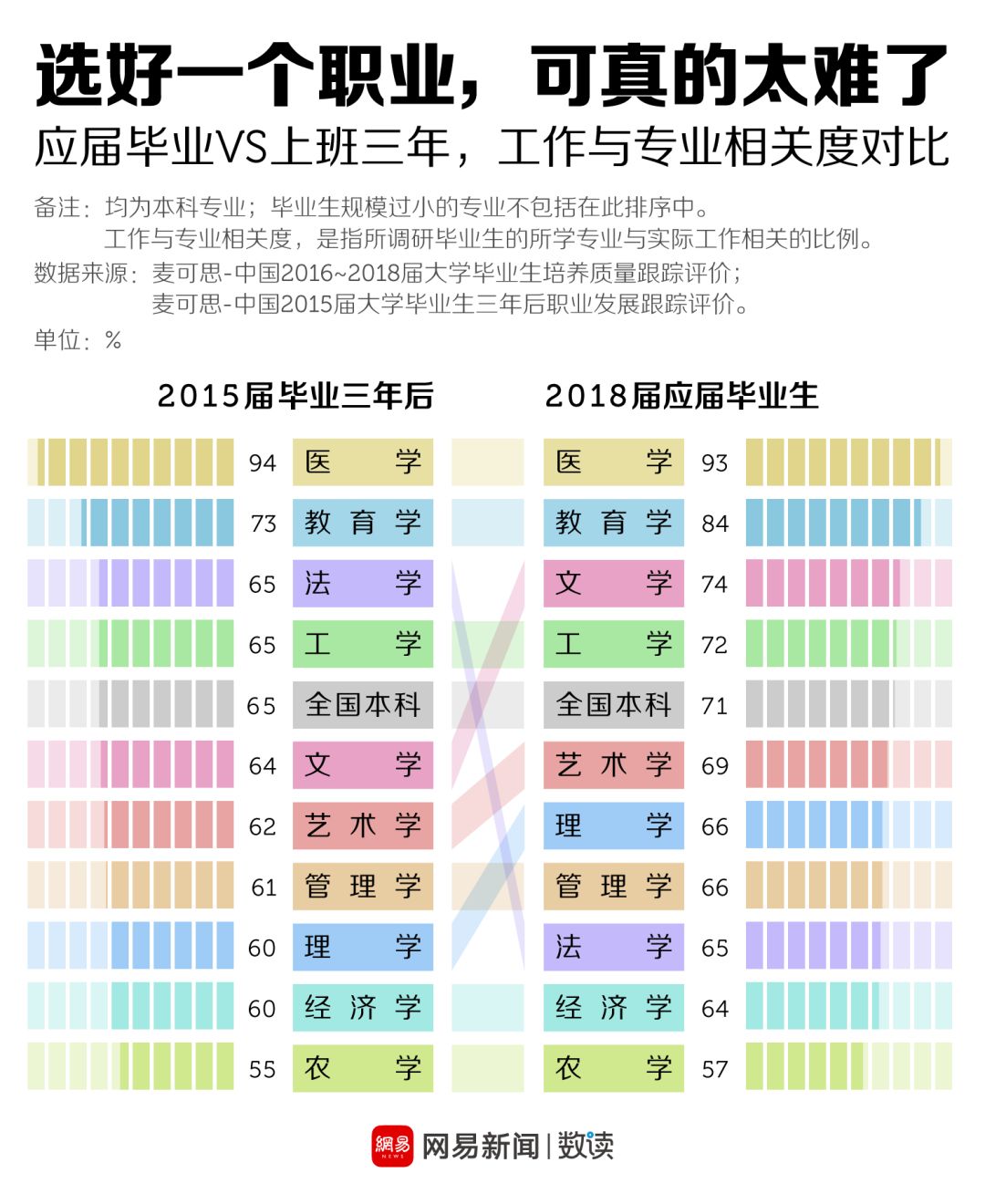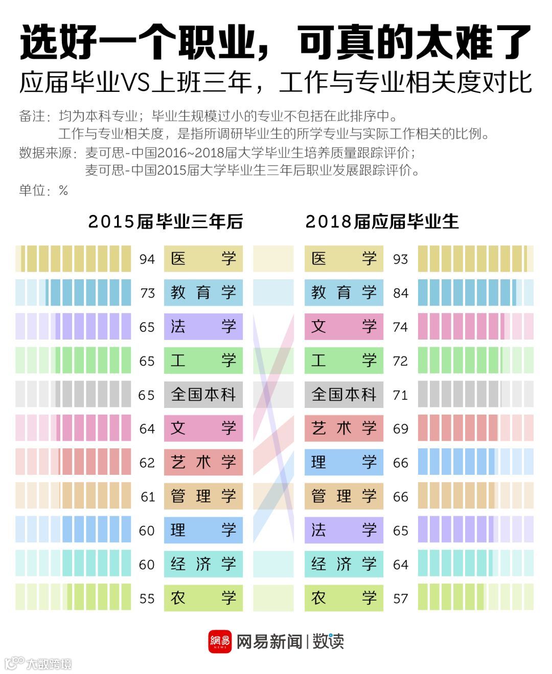 比如相关度极高的医学,除了与职业声望、行业前景有关,攻读学位期间的巨大精力投入、行业的相对独立性,使其毕业生本身也不具备较大的“转行”空间。