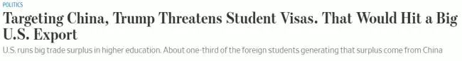 “川普限制留学签证,针对中国!会对出口经济造成影响”