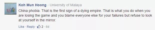 “(川普)厌恶中国。这将是美国走向死亡的开端。失败的时候总是想着找别人麻烦,而不是照照镜子看自己有什么毛病!”