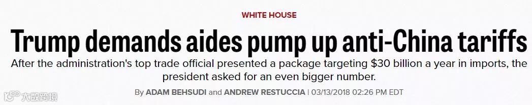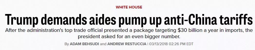 据悉美国贸易代表处(政府行政部门)在会议中向川普提交了一系列针对中国的关税壁垒政策,会影响到300亿美元的中国进口贸易。