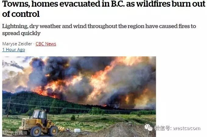 由于连续高温干燥,BC省内陆多处山火持续,BC省运输厅于昨晚(7月8号)宣布BC省进入紧急状态,周五下午已经有超过1万人需要紧急疏散。