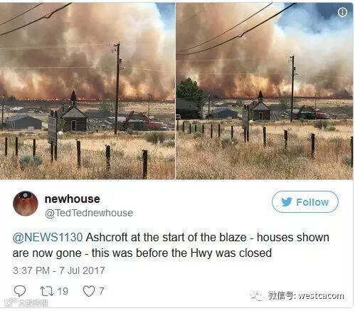 目前最严重的山火是位于Ashcroft和Cache Creek的山火。