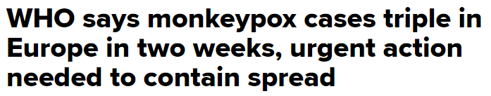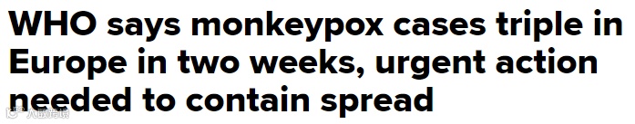 上周,世界卫生组织警告称,由于猴痘病例在过去两周增加了两倍,所以各国需要采取紧急行动以遏制欧洲病例的蔓延。