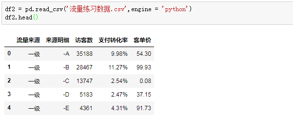 导致报错的原因,是数值型数据和非数值型数据相互计算导致的。PANDAS把带“%”符号的转化率识别成字符串类型,我们需要先拿掉百分号,再将这一列转化为浮点型数据:
