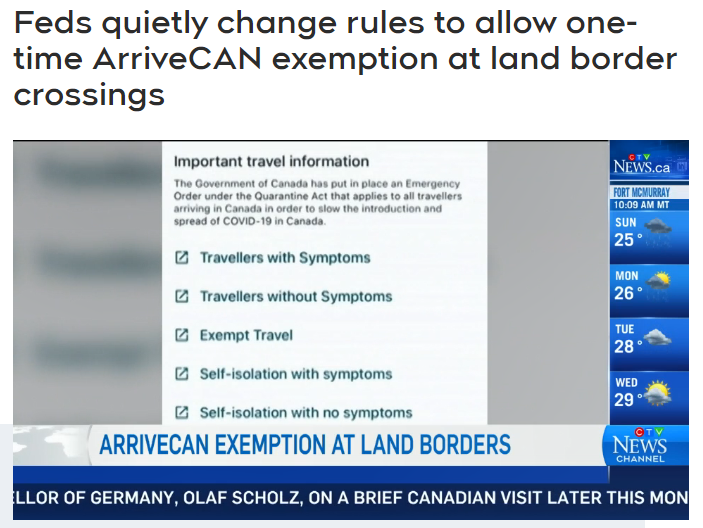 近日,联邦政府悄悄更新了边境规定,放松了对于ArriveCAN应用程序的严格规定,对未能提交强制性健康信息的旅行者给予豁免。