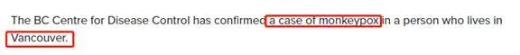 就在刚刚,BC省疾控中心发布最新通知——本省爆出首例猴痘确诊病例!就在温哥华!