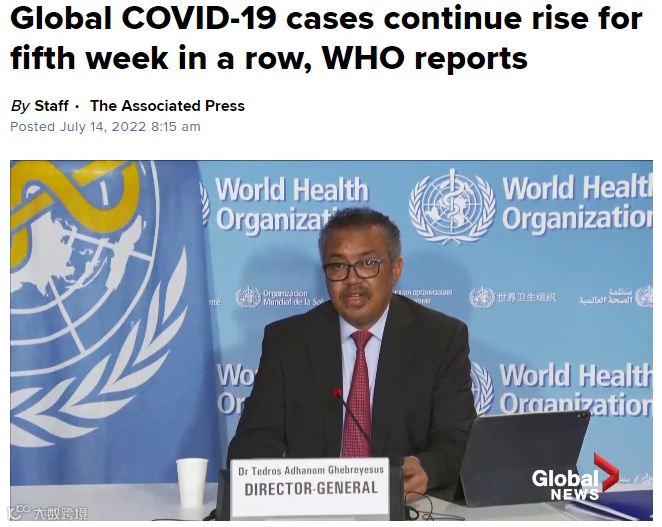 过去两周,向世卫组织报告的COVID-19病例激增30%,主要是由具有高传染性的Omicron变种BA.4和BA.5推动的。