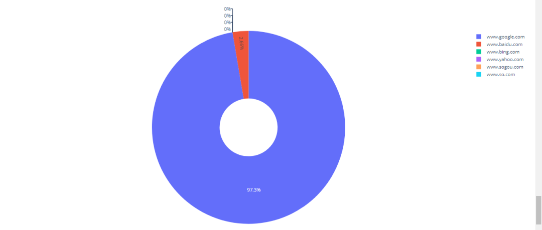 最后统计出了各大搜索引擎的使用率。google 的使用率达到了 97.3%,而百度只有不到 3%,大概是偶尔无法科学上网的时候用了下百度。
