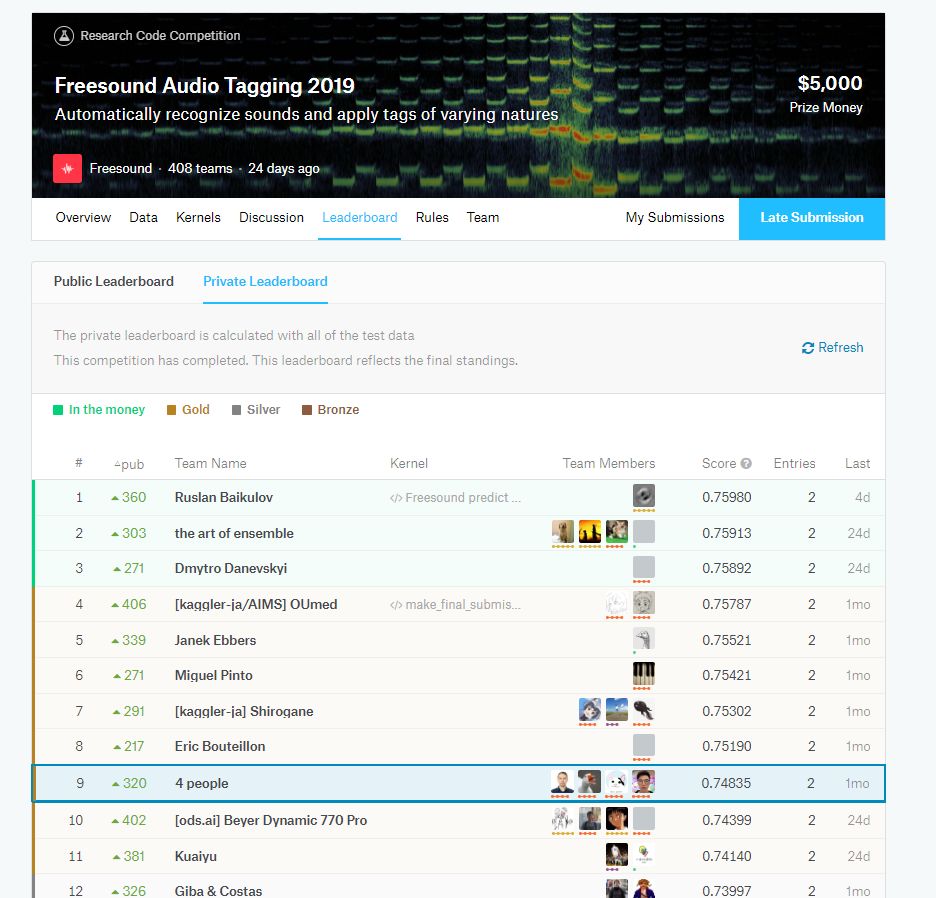 "我是十个月前才知道Kaggle的,当时是看着那么多奖金才想去参加的(虽然后面发现能拿块牌就不错了还想什么奖金)。认真参加的kaggle可能就那么三四场吧,我主要是做CV,然后前段时间也做了一个audio的比赛。因为自己比较懒,我一般是看到有人发布一个比较好的baseline我才会去参加这个比赛,然后就从各个方面去找solution,最后再融合,步骤虽然简单,但是要花费大量的时间和脑细胞。"