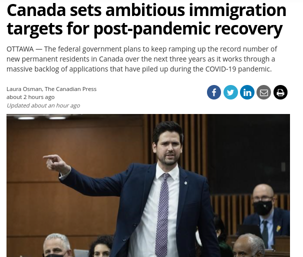 如今虽然疫情期间流失的许多岗位已经得到恢复,但各行业仍然有数十万职位正缺人。移民部指出,移民已经占了接近100%的劳动力增长,到这十年末的时候,预计要有500万加拿大人退休,到时在职工作者与退休人员的比例将跌至3比1。这很清楚地表明我们有提高移民人数的强烈经济需求。